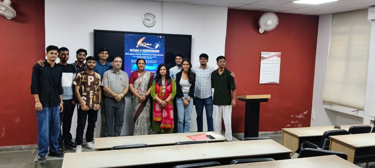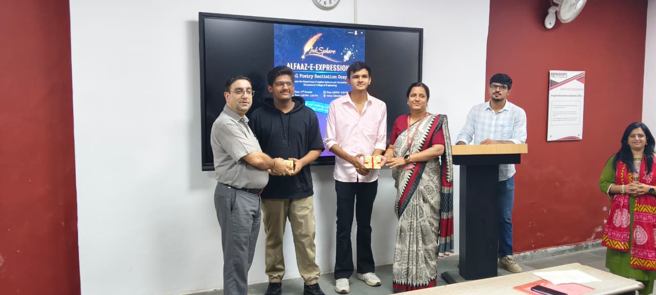 Alfaaz-e-Expressions concluded on a warm and encouraging note with the announcement of results, distribution of certificates, and a vote of thanks to all participants, judges, and faculty members. The event successfully fostered creativity, confidence, and linguistic flair among students. InkSphere conveyed heartfelt gratitude to the Department of Applied Sciences and Humanities for their continuous support, which played a vital role in making the event a meaningful and memorable celebration of poetry and expression.