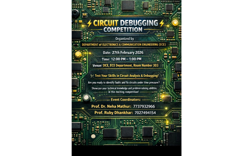 Department of Electronics & Communication Engineering (ECE), Dronacharya College of Engineering (DCE)in association with E-Yantra organized a Circuit Debugging Competition on 27thFebruary 2026 of the ECE Department coordinated by Dr. Neha Mathur and Ms. Ruby Dhankhar.