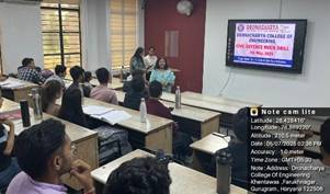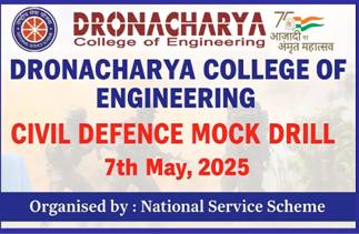 NSS volunteers of Dronacharya College of Engineering, Khentawas, Farrukhnagar, Gurugram, played a pivotal role in the successful organization of the Civil Defence Mock Drill held on 7th May 2025. Dr. Anupam Dalal, NSS Program Officer conducted the Mock Drill.