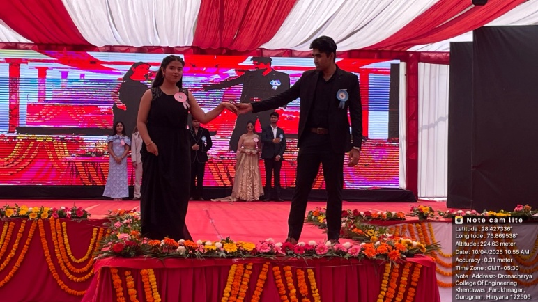 In her inspiring Welcome Address, Principal, Prof. (Dr.) Isha Malhotra, encouraged students to pursue excellence through discipline, creativity, and innovation. Mr. & Ms. Fresher competition commenced with the Introduction Round, where participants showcased confidence and charm, followed by a mesmerizing Bollywood dance by senior students. A proud moment followed as GSOC and Smart India Hackathon achievers were felicitated for their exemplary accomplishments.