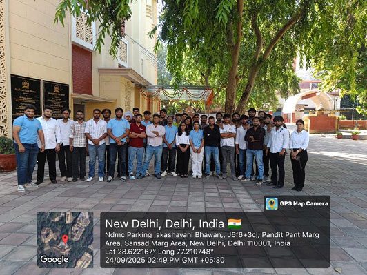 Dronacharya College of Engineering, Khentawas, Gurugram, attended a remarkable cultural presentation organized by Akashvani Delhi at the Akashvani Rang Bhavan Auditorium, Sansad Marg, New Delhi, on the auspicious occasion of Navratri, on 24th September 2025. The event featured a captivating performance of the literary classic “Ram Ki Shakti Puja” written by the celebrated Hindi poet Suryakant Tripathi ‘Nirala’. The program began at 3:00 PM and beautifully combined literature, spirituality, and the performing arts to convey a profound message of faith, perseverance, and inner strength and witnessed the enthusiastic participation of 65 students, accompanied by Dr. Sandeep RajandProf. Urvashi Bakshi.