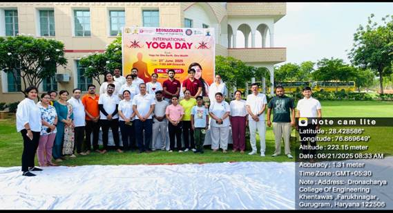The event concluded on a high note, leaving participants refreshed, motivated, and more mindful of the importance of health and wellness. The International Yoga Day celebration at Dronacharya College of Engineering successfully fostered a spirit of harmony, fitness, and mindfulness within the campus community.
