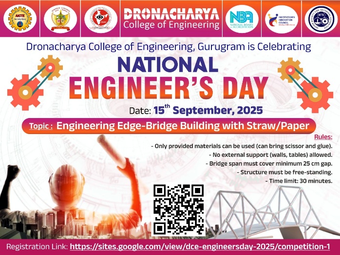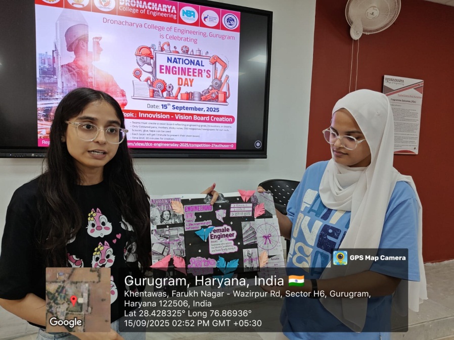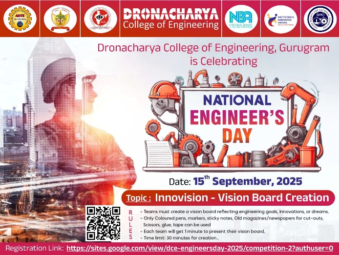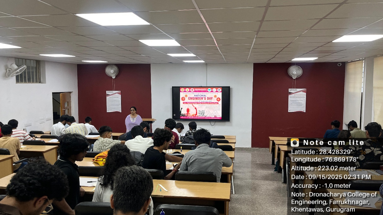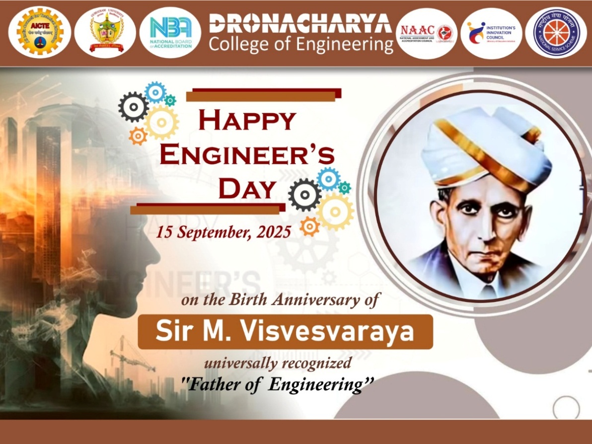 Institution’s Innovation Council (IIC), Ministry of Education (MoE),Dronacharya College of Engineering, Gurugram, celebrated National Engineer’s Day on 15thSeptember 2025 with great enthusiasm and a spirit of innovation. The event honored the invaluable contributions of engineers to society while motivating young technocrats to embrace creativity, problem-solving, and visionary thinking.