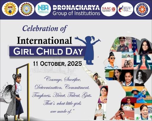 NSS Units of Dronacharya College of Engineering, Farrukhnagar organized an event on 11th October 2025 to observe National Girl Child Day with great enthusiasm and pride. The celebration aimed to promote awareness about the rights, education, and empowerment of girls in society, inspiring students to contribute toward building a community where every girl can live with dignity, receive equal opportunities, and pursue her dreams freely.