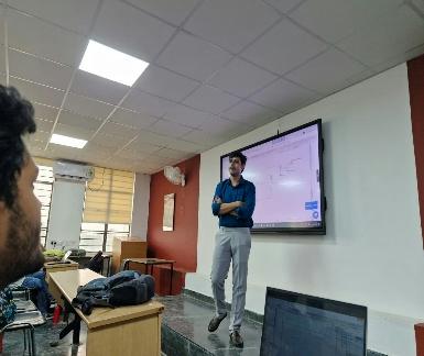 The session began with a formal welcome and an introduction to the resource person. Mr. Aditya shared his academic journey and experiences, inspiring students with his innovative projects and research pursuits. Students were introduced to the fundamentals of resistors, capacitors, diodes, transistors, LEDs, and integrated circuits. A live demonstration by student Divyanshu showcased practical circuit design, while the mentor guided participants through the structured approach to project development.