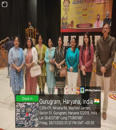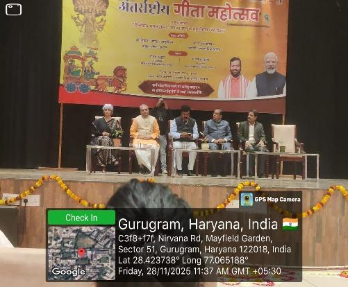 Dronacharya College of Engineering’s faculty members Dr. Anupam Dalal and Dr. Asok Kumar from NSS Unit attended the Gita Mahotsav Commemoration held on 28th November 2025 at Gurugram University. The event was organized to highlight the significance of the Bhagavad Gita in shaping the vision of Viksit Bharat 2047 and to explore how its timeless wisdom can guide ethical leadership, national progress, and holistic human development.