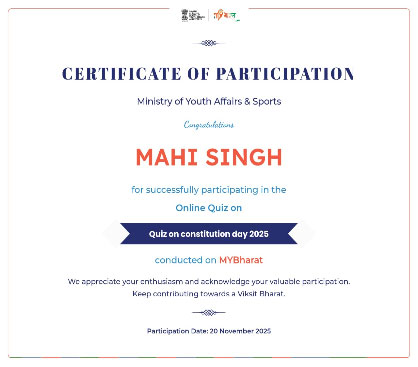 Their motivational words inspired students to embrace civic responsibilities with sincerity and pride. The activities highlighted various dimensions of constitutional learning: the quiz tested sharp knowledge; the essay competition encouraged meaningful reflection on constitutional values and national development, the collective Preamble Reading created a moment of unity and patriotic resonance, and the speech presentations allowed students to articulate powerful insights on India’s democratic journey.