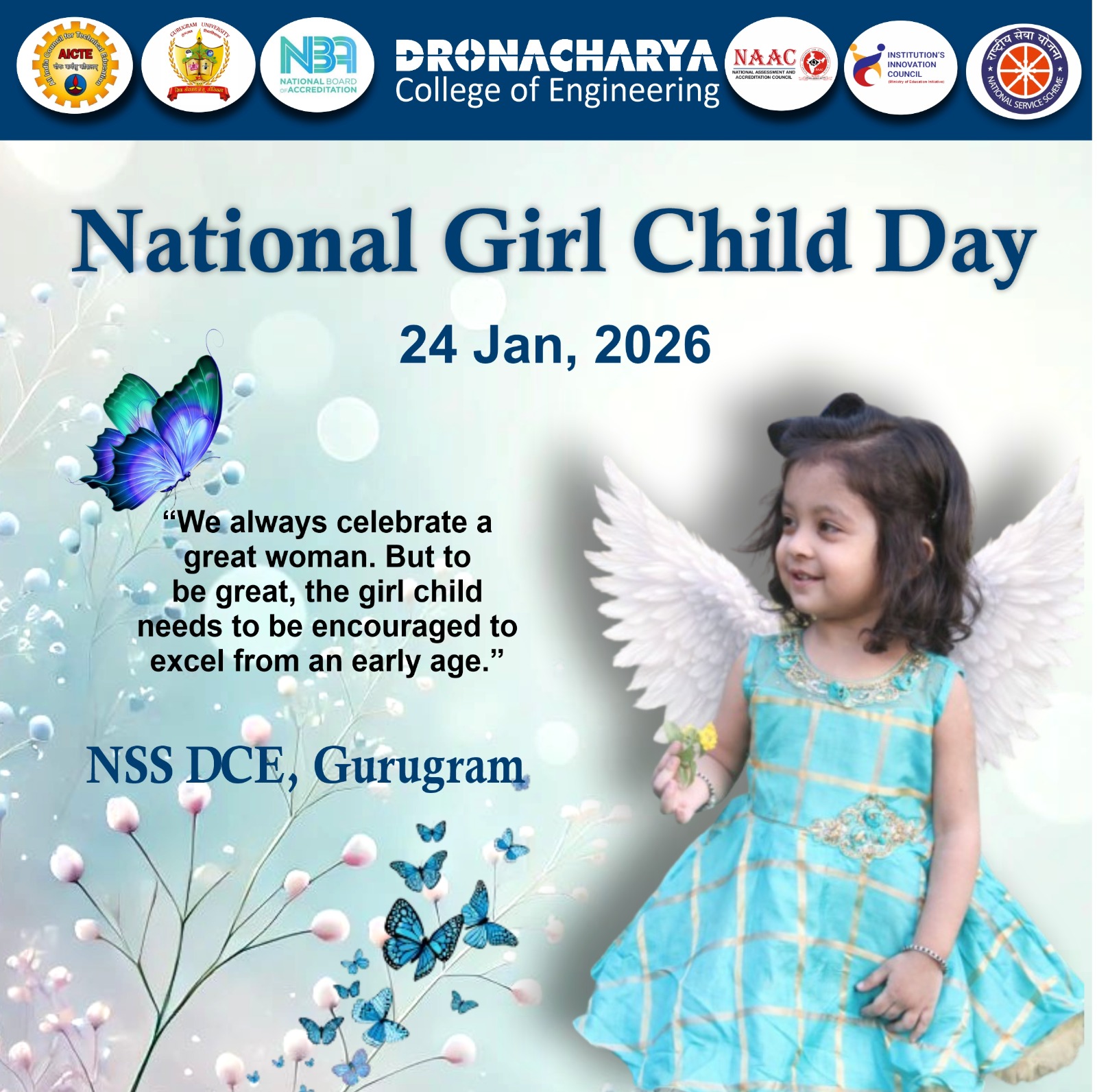 NSS Club of Dronacharya College of Engineering organized and celebrated National Girl Child Day on 24th January 2026 with great enthusiasm and active participation from students and faculty members. The celebration aimed to spread awareness about the importance of the girl child and to address issues related to gender discrimination and inequality prevalent in society.